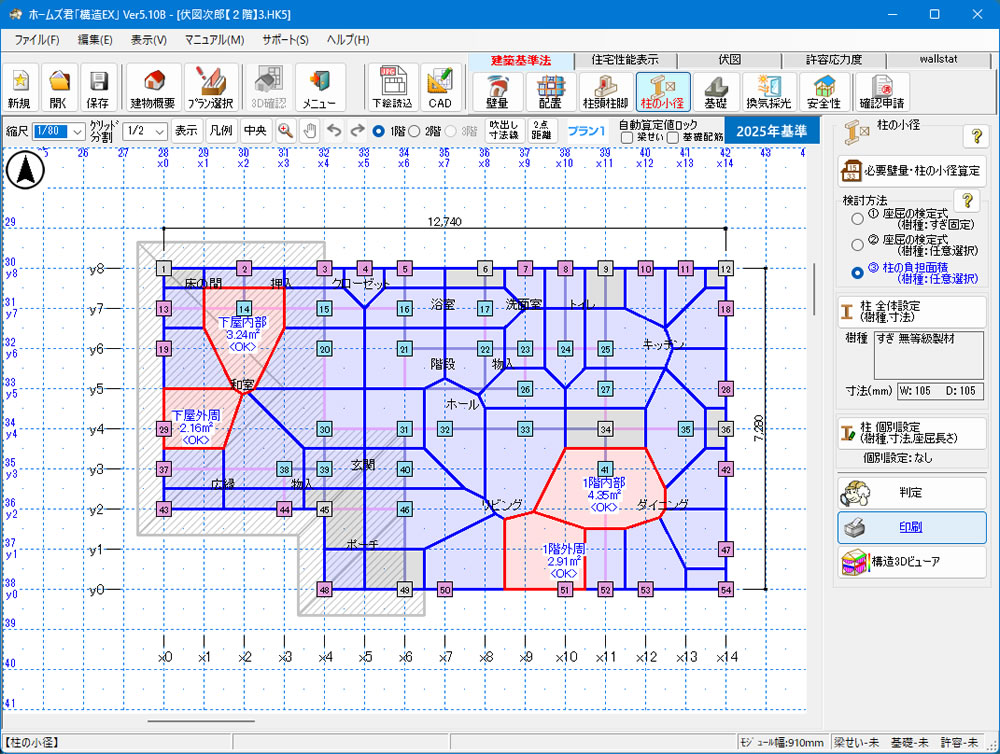 2025年法改正で求められるようになった「柱の小径」の検討。