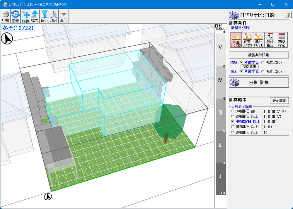 「省エネ診断エキスパート」より「日当りナビ:日影計算」の画面