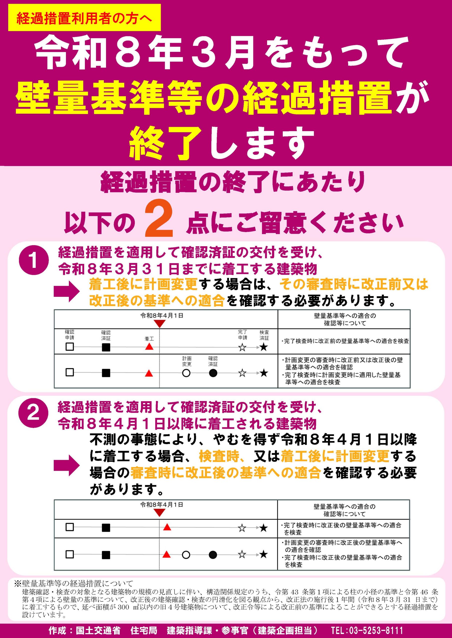 令和8年3月をもって壁量基準等の経過措置が終了します(国土交通省資料)